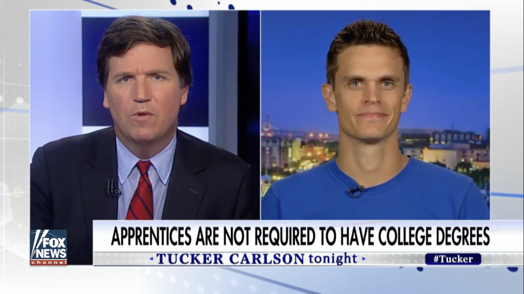 A few years back, Tucker Carlson featured Isaac Morehouse, founder of Praxis, on his show. (Here’s the first interview.)
